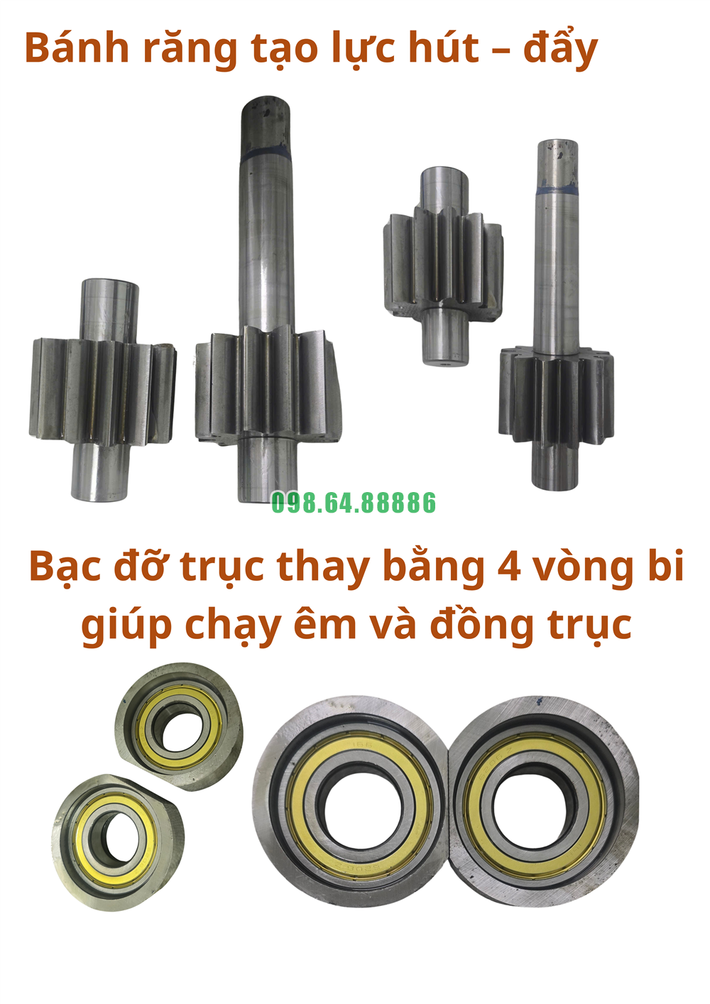 Trục và ổ đỡ được thiết kế chịu nhiệt, giảm ma sát, không biến dạng khi tải lớn liên tục