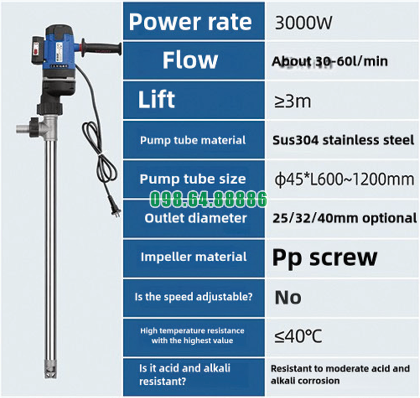 Với lựa chọn vật liệu phù hợp và thiết kế tối ưu, Bơm điện trục cong 160 – JDT-3000W-LG chứng minh khả năng chịu môi trường hóa chất nhẹ rất tốt, trở thành giải pháp đáng tin cậy cho doanh nghiệp cần bơm dầu và dung dịch công nghiệp trong điều kiện làm việc thực tế