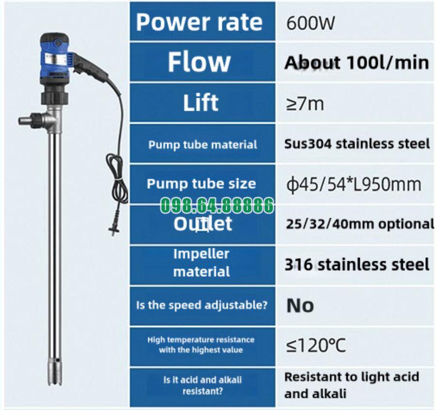 Bơm thùng phuy nhựa RPP JDT-G120-600W có thiết kế nhỏ gọn, trọng lượng nhẹ, dễ dàng di chuyển và thao tác trong nhiều môi trường làm việc.