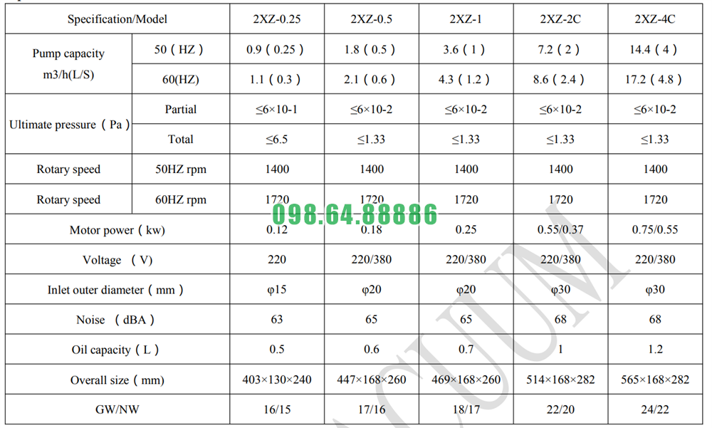 Bơm 2XZ-2 sử dụng: