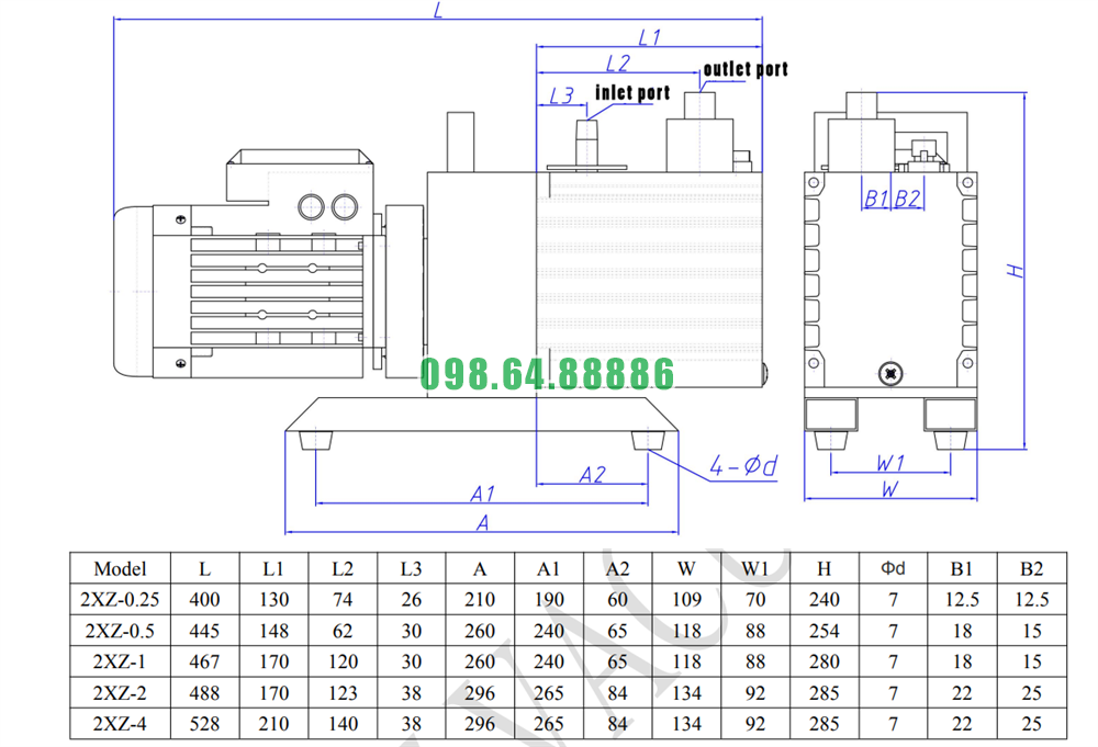 Model 2XZ-2 có kích thước tối ưu giúp thiết bị dễ đặt trên bàn thao tác, kệ để dụng cụ hoặc trong các module của hệ thống chân không. Thiết kế chắc chắn, thẩm mỹ, phù hợp với không gian làm việc hiện đại trong phòng lab.
