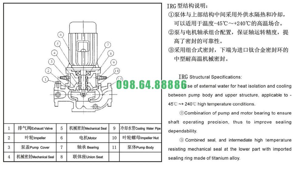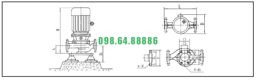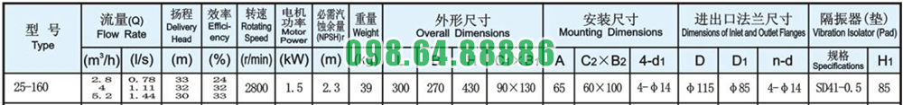 Bơm nước inline ly tâm trục đứng ISG25-160, IRG25-160 tốc độ quay 2900 r/min