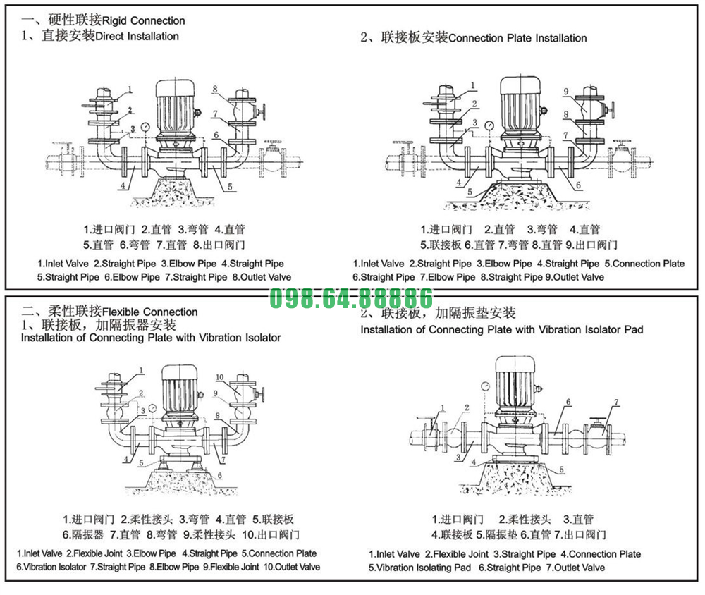 Được trang bị đế bơm tiêu chuẩn chắc chắn, bơm có thể cố định chắc chắn trên nền sàn bê tông hoặc khung sắt. Đế được đục sẵn lỗ bắt bu lông, thuận tiện cho kỹ thuật viên trong quá trình lắp đặt.