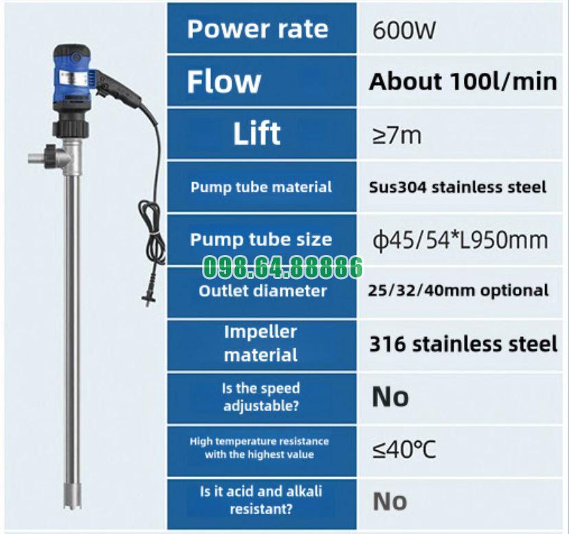 Bơm thùng phuy điện JDT-600W-304SUS có cấu trúc đơn giản, dễ nhận biết và dễ thao tác, giúp việc lắp đặt trở nên nhanh chóng và thuận tiện. Thiết kế tối giản, kết nối thẳng hàng, công tắc vận hành đơn giản và khả năng tháo lắp dễ dàng giúp thiết bị phù hợp với mọi môi trường công nghiệp cần triển khai nhanh và hiệu quả.