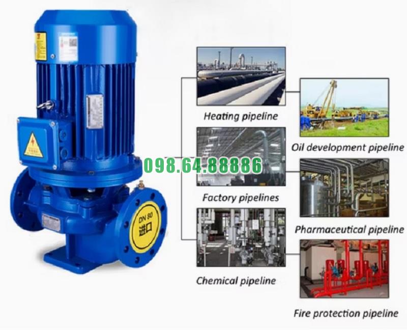 Máy bơm lùa, bơm tăng áp, bơm inline ISG80-160A, IRG80-160A 7.5kw, 46.8m3, 13m