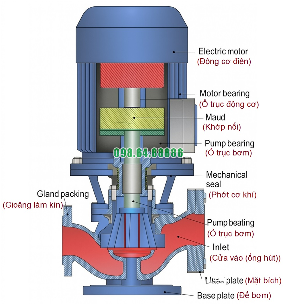 Cấu tạo bơm ly tâm trục đứng model ISG65-250 và IRG65-250 gồm nhiều bộ phận được thiết kế và chế tạo đồng bộ, từ thân bơm, cánh bơm, trục, phớt cho đến động cơ và vòng bi. Mỗi bộ phận đảm nhận một vai trò cụ thể, góp phần tạo nên khả năng vận hành ổn định, hiệu suất cao và tuổi thọ bền bỉ của bơm. Việc hiểu rõ từng bộ phận sẽ giúp người sử dụng lựa chọn đúng, vận hành an toàn và bảo trì hiệu quả